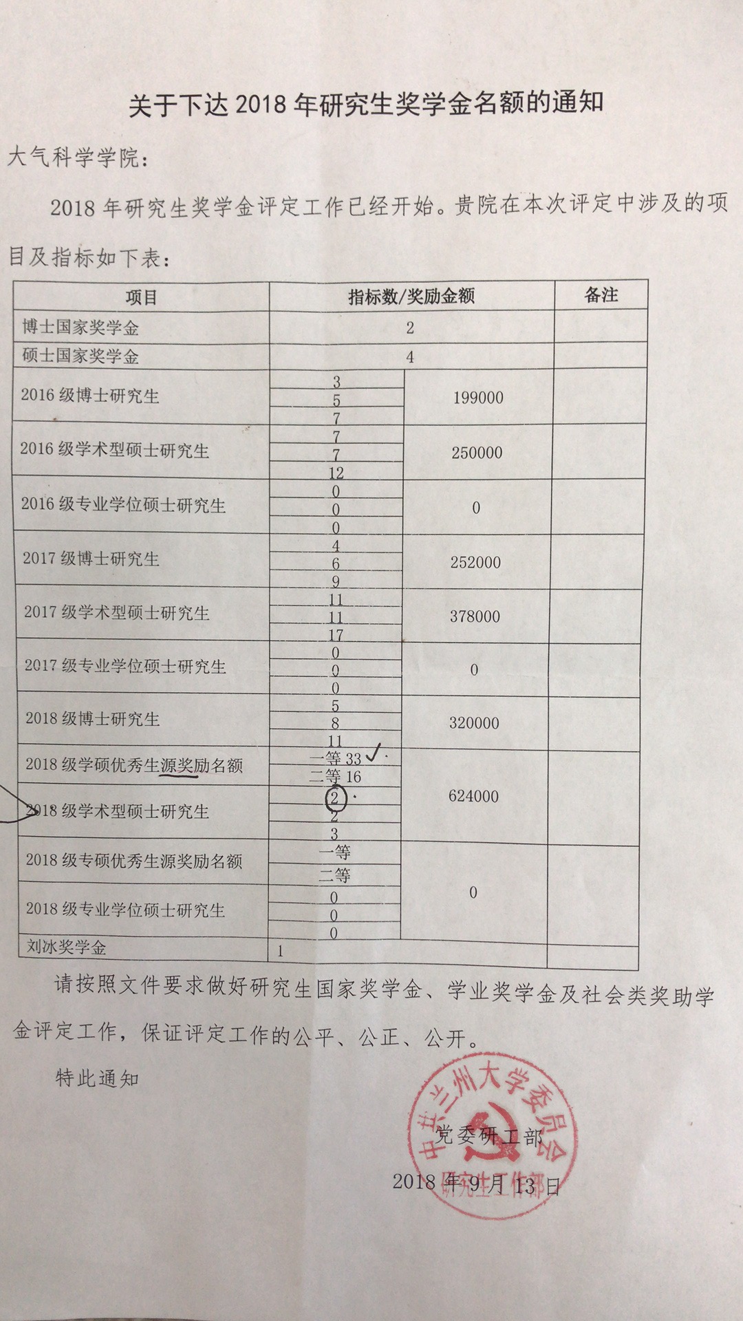 2.按照学校相关精神,结合名额分配办法,2018级硕士研究生学业奖学金按照优秀生源和普通学硕两大类对照各自的名额进行参评。